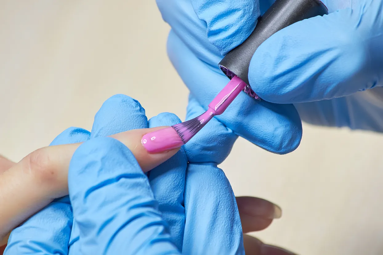 Pose de semi permanent et renforcement sur les mains et les pieds sur modèle.